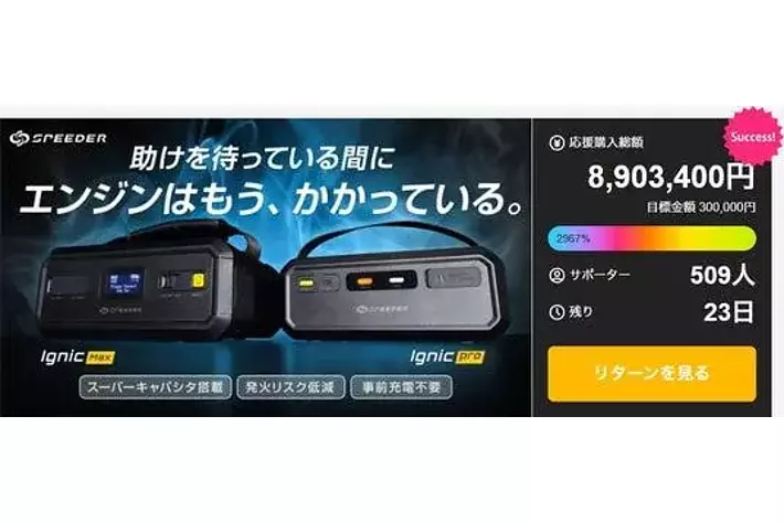 【目標2967%達成 &追加リターンも開始!】スーパーキャパシタ式ジャンプスターター 『Ignic(イグニック)』シリーズにマクアケ割が追加!Makuakeプロジェクト順調に進行中!