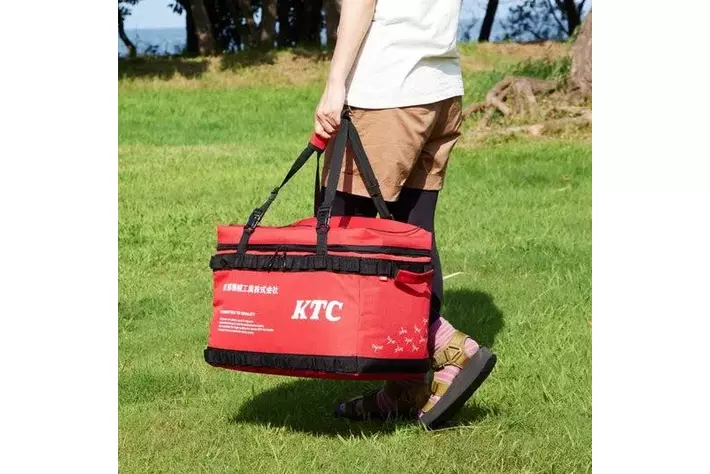 キャンプやアウトドアに最適な大容量の折りたたみクーラーバッグ。軽量でコンパクトに収納でき、2泊3日の保冷効果をキープします。工具をモチーフにしたKTCオリジナルのトンボ柄が、個性を引き立てます。