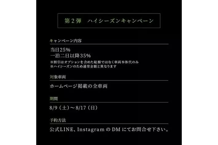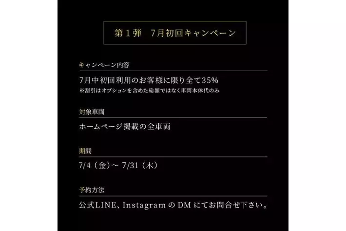 ※キャンペーン割引は「車両本体代」にのみ適用されます。オプション(チャイルドシート・免責補償等)、その他付帯サービスには適用されません。
