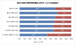 クルマの利用頻度別に見ると、利用頻度が「2~3カ月に1回以下」のみ、渋滞予測を確認する人が60%を下回りました。