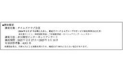 ※入会金・年会費無料の会員制ポイントプログラム。タイムズパーキングやタイムズカー、タイムズカーレンタルの利用等でポイントがたまる他、会員限定サービス等を提供。会員数1,234万人(2025年3月末現在)。なお、本アンケートは、駐車場やカーシェアリング、レンタカー等のクルマに関わるサービスを利用した方々を対象としたものです。