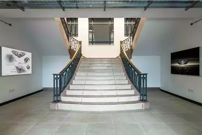 近年オープンした「Excellence Centre for Quality and Launch」、現在建設中の塗装工場、新しいBEVの組立ラインに続き、今回公開した新スタジオの開設は、ベントレーの理念である「新しく作り直すのではなく、歴史的価値を守る修復」を体現する取り組みのひとつです。その取り組みで象徴的なのは、1939年製の真鍮製階段です。階段は丁寧に修復され、元の場所に戻されました。新たに増築された3階部分との境界には記念プレートが設置され、「過去と未来の交差点」として大切に扱われています。