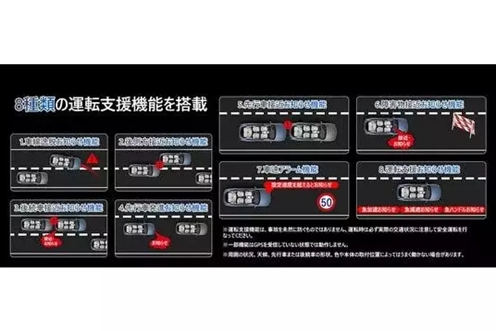 ※周囲の状況、天候、先行車または後続車の形状、色や本体の取付位置によってはうまく働かない場合があります。