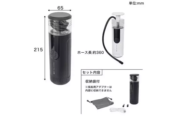 ・セット内容/本体、USB typeCケーブル、風船用アダプター2個、自転車用アダプター、