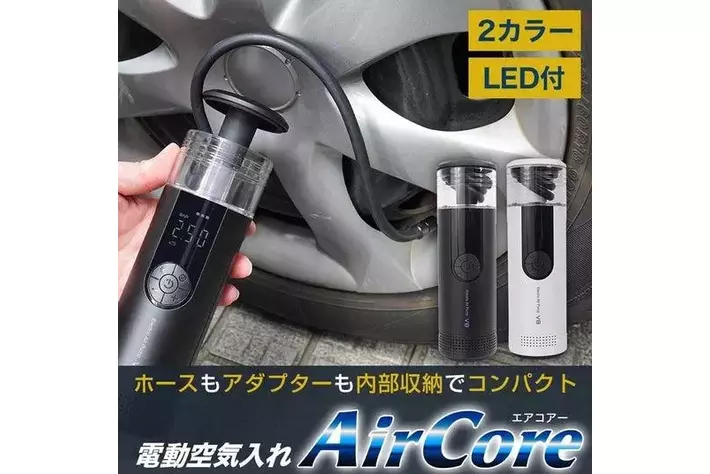 タイヤの空気圧をメンテナンス、これ1台でOK『収納機能付き電動エアーポンプ「AirCore(エアコア)」』を発売