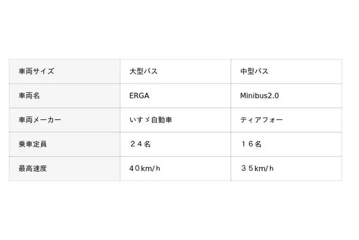 [ポイント]1. 中型バスのティアフォー製Minibus2.0に加えて、国産大型バスのいすゞ自動車製ERGAで実証運行を