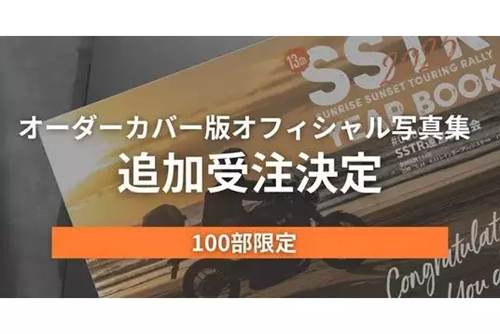 SSTR運営委員会(本社:東京・渋谷区、代表:風間深志)は、この度、SSTR2025参加者向けに好評を博しております「SSTR2025 オフィシャル写真集【オーダーカバー版】」の追加受注を100部限定で開始することをお知らせいたします。本商品は例年、SSTRのエントリー時のみ受注を受け付けておりましたが、参加者の皆様からのご要望にお応えし、2025年7月14日(月)から7月18日(金)の期間で追加販売が決定いたしました。
