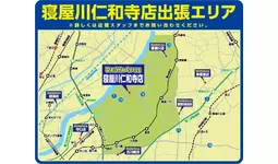 寝屋川仁和寺店 出張修理エリア 地図上の濃い緑色の範囲が寝屋川仁和寺店出張修理エリアとなっております。
