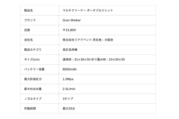 グランウォーカー マルチクリーナー ポータブルジェット 好評発売中