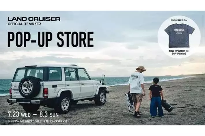 トヨタ・コニック・プロ株式会社(本社:東京都千代田区、代表取締役社長:武田淳一郎、以下「トヨタ・コニック・プロ」)は、『LAND CRUISER OFFICIAL ITEMS(ランドクルーザーオフィシャルアイテムズ)※旧LAND CRUISER COLLECTION』東海エリア初となるPOP-UP STOREをジェイアール名古屋タカシマヤにオープンいたします。7/4にローンチした新商品のラインアップに加え、4アイテムを本イベントと同時に発売開始。POP-UP限定のアイテムも販売いたします。この機会にぜひお立ち寄りください。