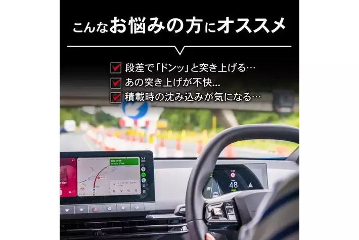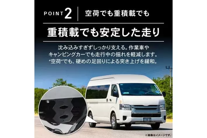 作業車やキャンピングカーでも走行中の揺れを軽減します。