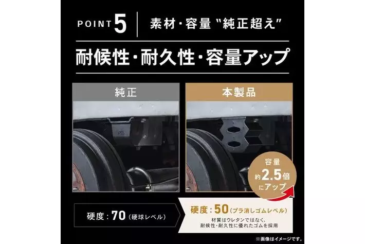 【段差の「ドンッ」軽減】ハイエース200系専用バンプラバー登場!突き上げの不快感を軽減し、快適な走行性能を実現。素材・容量ともに純正超え!ハイエースオーナーに届けたい、体感できるカスタムパーツ。