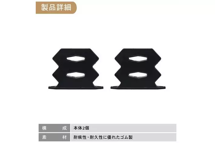 ハイエース200系専用 リア用左右セット バンプラバー。段差や荷重によって生じる「ドンッ」という突き上げや不快な衝撃をやわらげる設計で、乗り心地が大きく変化。純正を超えるクッション性と耐久性を実現。