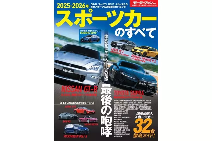 モーターファン別冊 ニューモデル速報 統括シリーズ Vol.169は、「2025-2026年 スポーツカーのすべて」です。国産、輸入の多くのスポーツカーを車種ごとに定型フォーマットで詳しく解説。内外装の豊富な写真やインプレッション、バリエーション展開などを、各車横並びで比較検討できる情報量の多い保存版の1冊です。巻頭特集では、日産GT-R、トヨタ・スープラ、レクサス RC F、メガーヌ・ルノースポールを取り上げ、ピュアエンジン高性能スポーツカーを振り返り、その味わい深さを堪能。消えゆく名車の偉大さを振り返りました。スポーツカーの最新情報をあらゆる角度から知りたいあなたに、ぜひおすすめします。