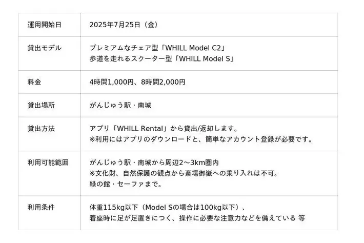 詳細:https://whill.inc/jp/mobility-service/how-it-works/onsite-fleet-service