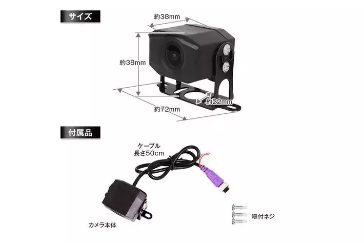 バックカメラに最適な鏡像仕様で、IP67の防水性を誇ります。