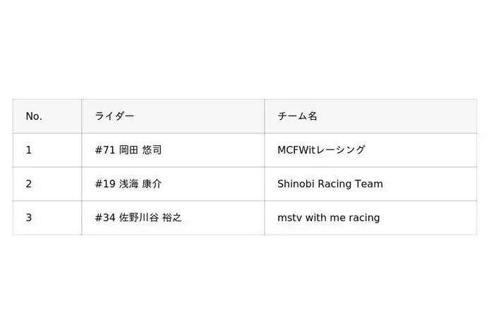 初めてNinja Team Green Cupへ参加される方には、初参加賞としてNinja Team Green Cupオリジナルパラソル(非売品)をプレゼントしています。今大会の参加者のうち約20%が初参加者となり、たくさんのライダーがレースデビューを果たしました。