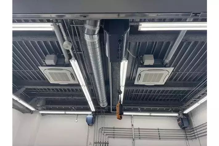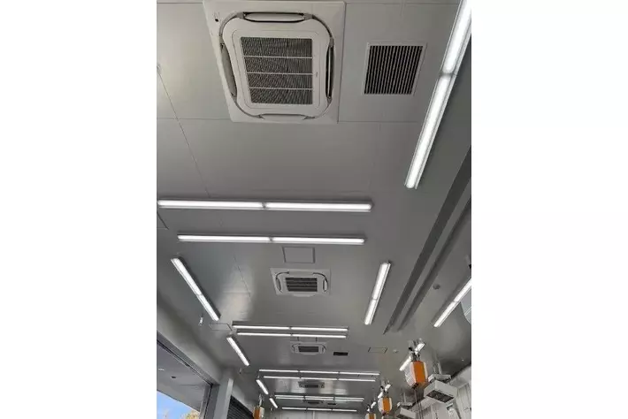 240平米の整備工場事例、空調8台設置し夏場の室温26度に