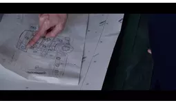 トラックデザインの図面を見つめる、左) 青木被服デザイナー 青木俊樹 右) 株式会社キャリオン 代表取締役 應本一樹 社長