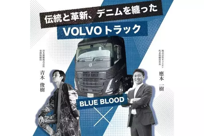 VOLVOトラックの正規ディーラーであるボルボ・トラック中国 株式会社キャリオン(本社:岡山県倉敷市、代表取締役社長:應本 一樹)が岡山県井原市に本社をおき、ジーンズ縫製工場として創業60年以上の 青木被服株式会(本社:岡山県井原市、代表取締役社長:青木 茂)とのコラボレーションで両社の技術と精神を結集したデニム仕様のボルボ・トラック「BLUE BLOOD(ブルーブラッド)」を制作しました。