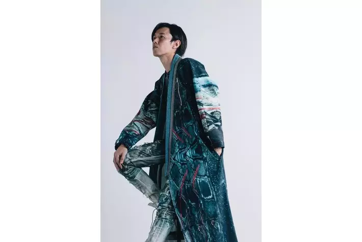 本コンセプトトラックは、ダメージ刺繍が施されたブラックデニムを纏い、まるで漆黒の岩肌のように力強く、かつそこに流れ込むような藍色の“血脈”を縫い上げた、躍動と静寂の融合を象徴しています。