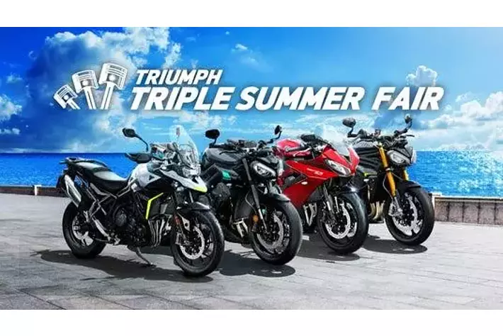 トライアンフモーターサイクルズジャパン株式会社(本社:東京都港区海岸 代表取締役社長:大貫陽介)は、8月1日(金)~8月31日(日)までの期間中、全国のトライアンフ正規販売店にて、トライアンフの代名詞とも言えるトリプルエンジン搭載モデルにフォーカスした「TRIPLE SUMMER FAIR」を開催する事をお伝えします。