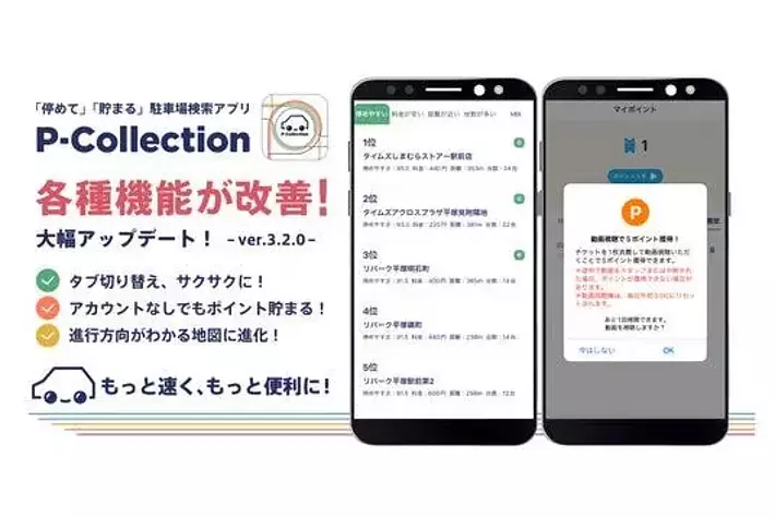 【無料】ポイ活機能付き駐車場検索アプリ「P-Collection(ピーコレクション)以下P-Collection」と駐車場専用マーケティングシステム「Park-Labo(パークラボ)以下Park-Labo」を運営する、パーキングサイエンス株式会社(本社:神奈川県藤沢市 代表取締役:井上直也)は、【無料】ポイ活機能付き駐車場検索アプリ「P-Collection」の大型アップデートとなるver3.2.0を7月31日にリリースすることを発表いたします。