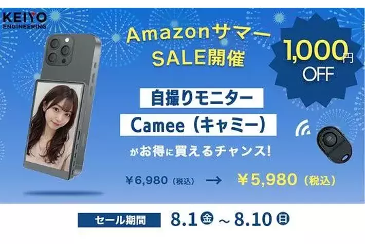 【Amazon暮らし応援サマーSALE開催!】KEIYOの自撮りモニターCamee&カー用品が驚きの価格で登場!この夏の思い出、Cameeでもっとキレイに残そう!