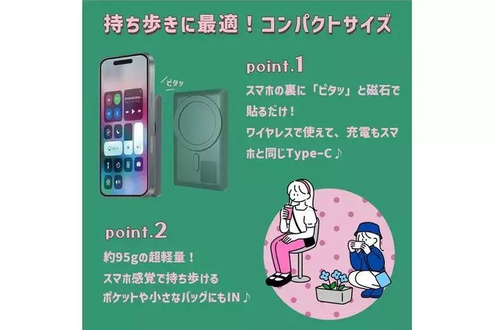 スマホの裏に磁石で貼り付けて、ミラーリング接続するだけで簡単に接続!