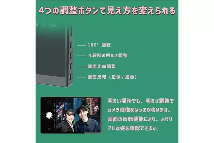 【4つの調整ボタンで見え方を変えられる】明るさの調整や左右反転もワンタッチ!
