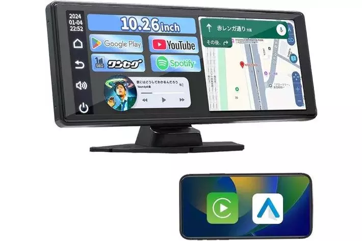 ワイドディスプレイオーディオ10.26インチ IPS液晶タッチパネル ワンセグ搭載地デジ視聴 ワイヤレスCarplay/AndroidAuto ミラーリング Bluetooth音楽&通話 音声コントロール 簡単取り付け