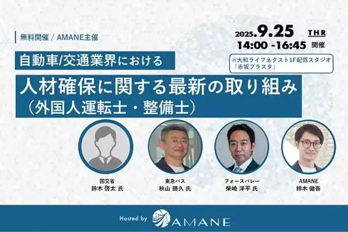 【経営者セミナー】国交省・東急バス・フォースバレー・AMANEが登壇「自動車/交通業界における人材確保に関する最新の取り組み(外国人運転士・整備士)」2025年9月25日(木)開催
