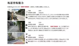 加速性能や登坂能力が大幅に向上しており、従来のT350Proでは体重85kgのスタッフが勾配20%の坂(三分坂)を登る際、速度が11km/hまで低下していたのに対し、T600 GRでは19km/hを維持し、圧倒的な登坂性能を実現しました。