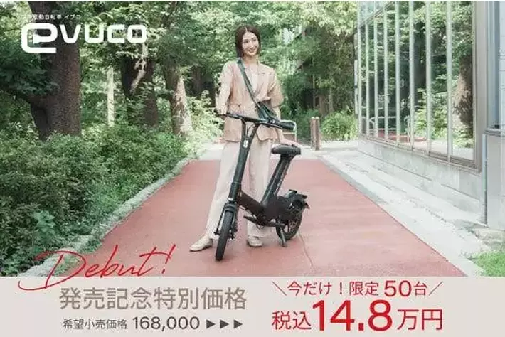 大人が似合うミニマルなフル電動自転車『evuco(イブコ)』、一般販売スタート!公式オンラインサイト限定で、発売記念50台を特別価格14.8万円(税込)にてご提供。