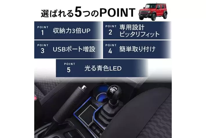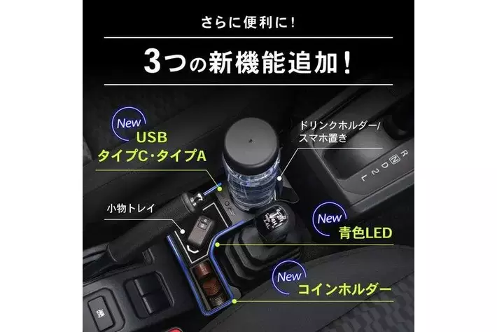 【3つの新機能追加】ジムニーシエラ ノマド専用「増設USBドリンクホルダー」車種専用設計・青色LED搭載・USB増設機能&コインホルダー付き。 ドライブが便利で快適に!ジムニーオーナー必携アイテム。