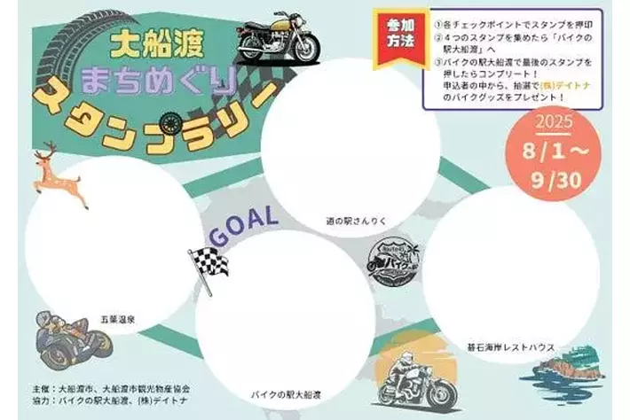 ※:2025年7月1日(火)より開催中の「茶ミスタ☆ラリー」では大船渡市のスポットを4カ所設置。その内3か所は「大船渡まちめぐりライダースタンプラリー」と同じチェックポイントとし、デジタルとリアルのスタンプラリーを一度に楽しんでいただけます。