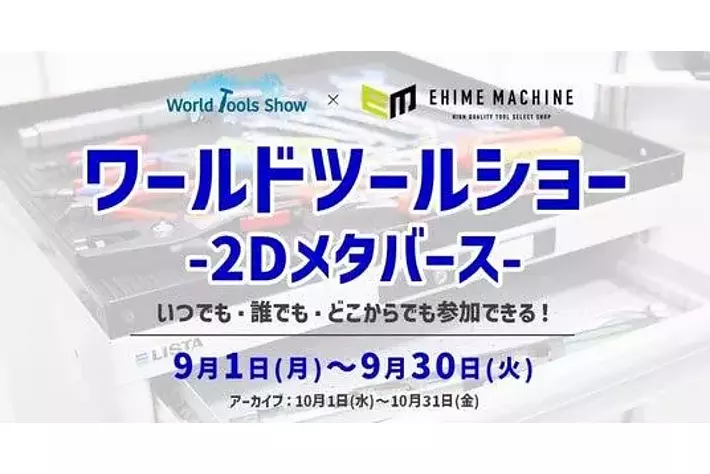 世界の優秀な工具を国内外に流通させる喜一工具株式会社(本社:大阪府大阪市西区、代表取締役社長:石川 武)は、国内外のプロフェッショナル向け工具専門オンラインショップを運営する株式会社エヒメマシン(本社:愛媛県松山市、代表取締役:山田 和哉)と共同で「ワールドツールショー -2Dメタバース-」を開催します。