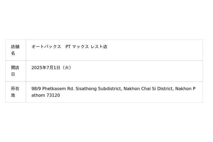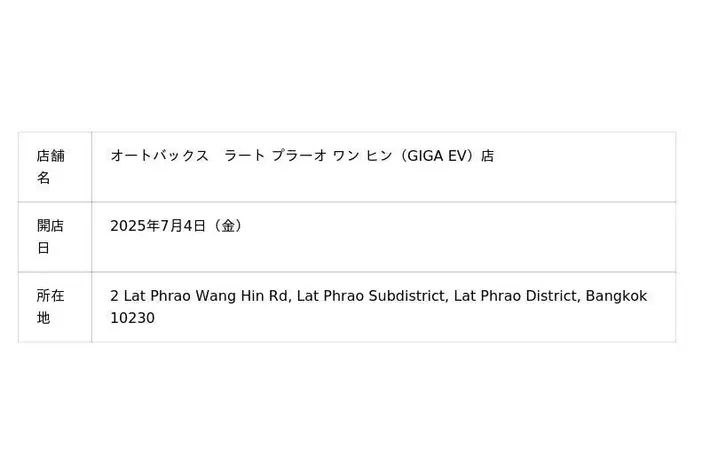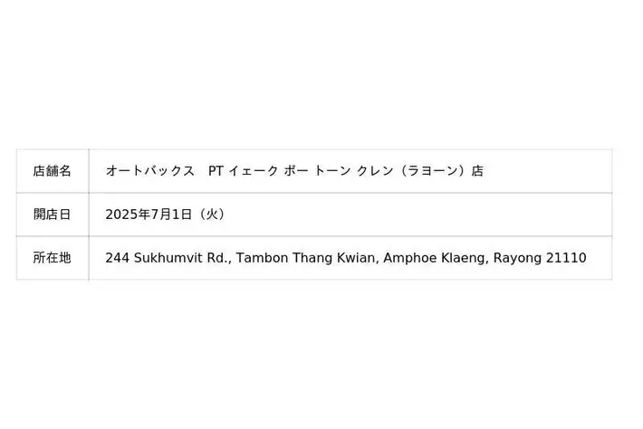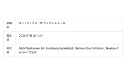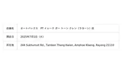 株式会社オートバックスセブン(代表取締役 社長:堀井勇吾)とタイ国内におけるエリアフランチャイズ契約を締結しているSIAM AUTOBACS CO., LTD.(代表取締役:Rangsun Puangprang)は、2025年7月に以下3店舗を新規オープンいたしました。
