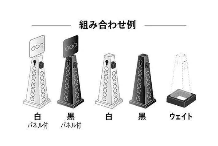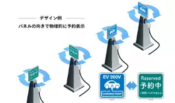 - 「パネル付き」で視認性と機能を追加ポールの上部にパネルを取り付けることで、簡単に掲示情報を追加できます。(例:予約中/予約者名/二次元コード/休止中 など)