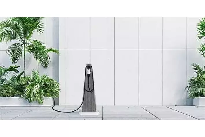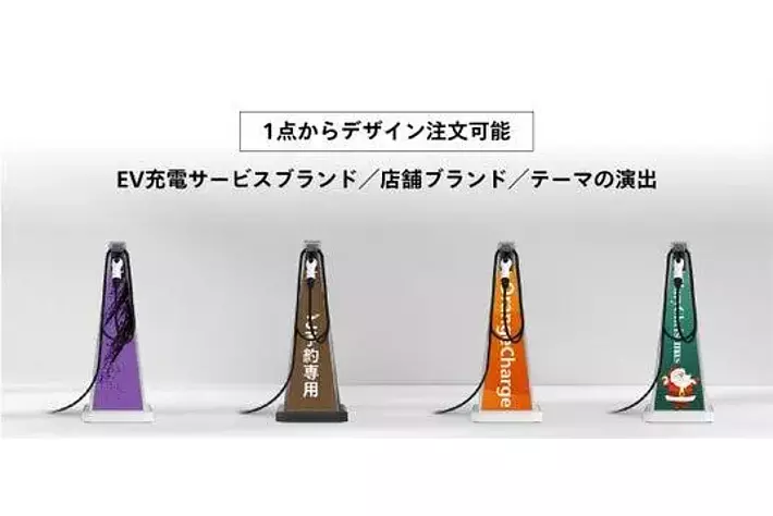 置くだけの新発想「EV充電コネクタポール」を新電元とテラモトが共同開発。1本から印刷デザイン注文可能。地面に設置できる「見せない普通充電器」の魅力を最大限に発揮。