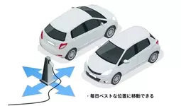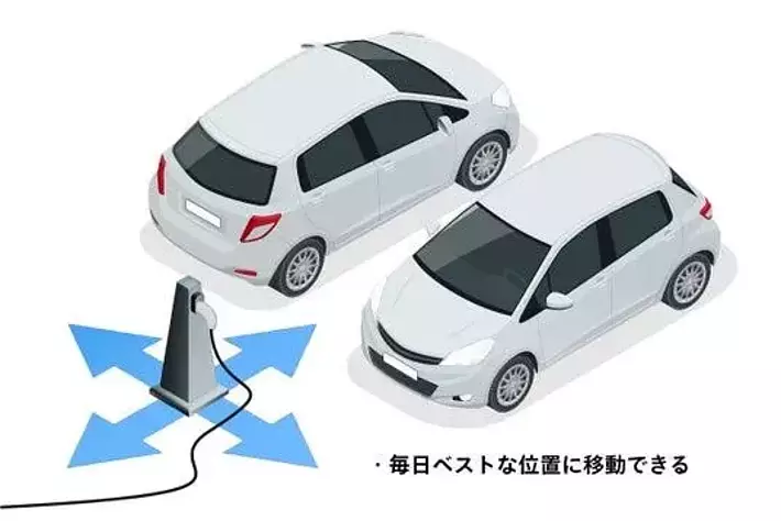 ポールを「動かせる」圧倒的メリット- ちょうど良い場所に車種変更でサイズや給電口の位置が変わっても、ベストな位置にすぐ変更できます。使わないときは壁際に寄せれば邪魔になりません。