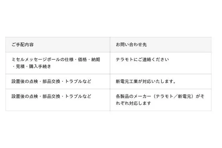 「ミセルメッセージポール(充電コネクタホルダー付き)」関連製品ご採用にあたってのご案内