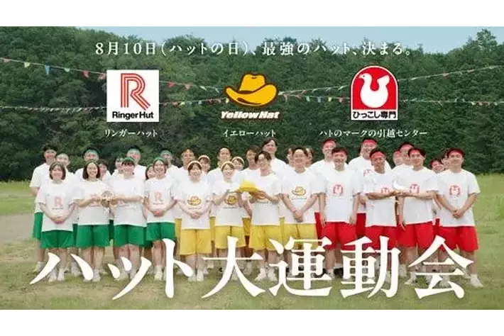 株式会社イエローハット(代表取締役社長:木村 昭夫)、株式会社リンガーハット(代表取締役社長兼CEO: 佐々野 諸延)、全国引越専門協同組合連合会(会長:北澤 聡、以下 ハトのマークの引越センター)の3社は、2025年8月10日(日)の「ハットの日」に向けて、新CM「ハット大運動会」篇を8月5日(火)より放映開始いたします。今年は、これまで実施してきた各社のハットの意味を確認する「ハット首脳会談」からテーマを一新し、「運動会」をコンセプトにハット綱引き・ハット入れ・騎馬戦といった種目において、3社の強みをいかして「最強のハットを目指して」競い合う姿を描きます。各社の社員が競技に全力で挑む、熱気あふれる様子をお届けします。