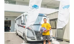 鳥羽海渡選手とCarstay提供の大型キャンピングカー