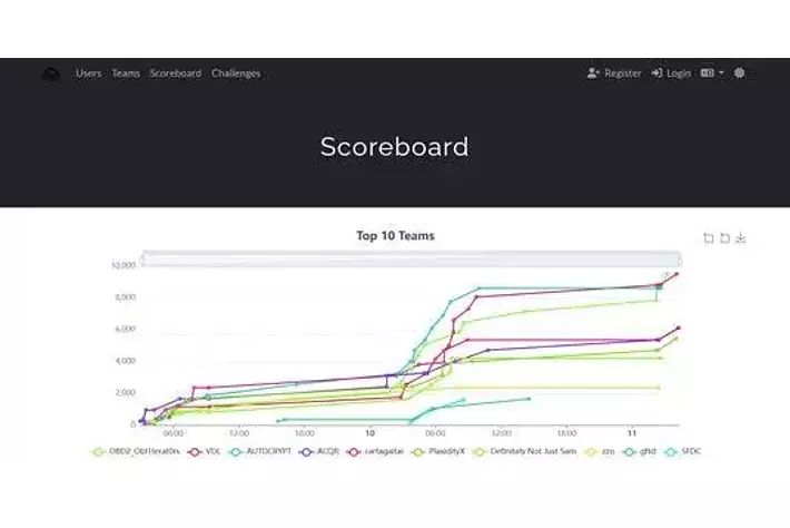 参加者がサイバーセキュリティに関する高度な課題を次々と攻略し、獲得したポイント(フラグ)の合計で競うCTFコンテストは、実践的な技術力と創造的な問題解決能力が問われ、中でも40近いチームが参加したCar Hacking Villageは自動車向けの実機に近い課題で競う人気セクションとなっており、そのため、上位入賞は世界的に見ても極めて高い技術を有し、実装レベルでの解析力・攻撃検証力・復旧提案力を兼ね備えていることの強い証左となります。