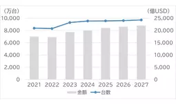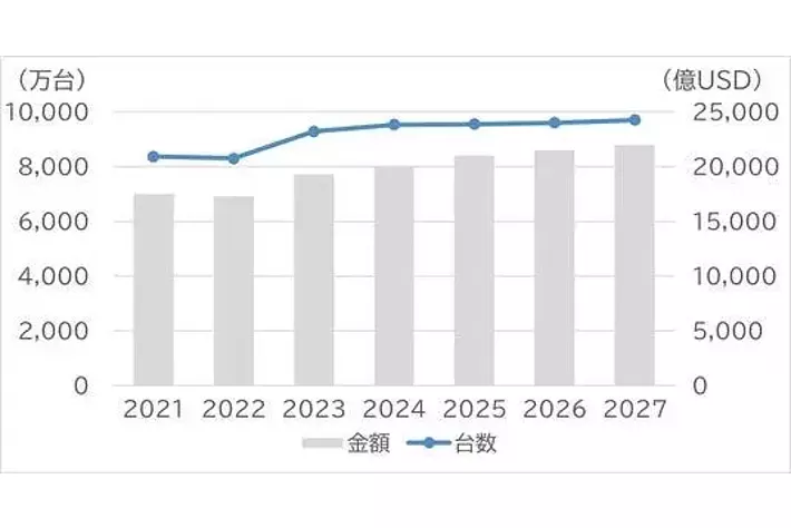一方で、2024年に入ってからは、欧米でのEV販売の一時的な鈍化や米国の関税政策(いわゆる“トランプ関税”)による市場の先行き不透明感が広がっており、今後の成長ペースには慎重な見方も出ている。また、日本市場ではトヨタ自動車やダイハツ工業による不正問題が影響し、国内販売台数が前年比約8%減となった。それでも中長期的には、新興国を中心とした需要の持ち直しが市場全体を支え、2026年には販売台数が過去最高水準へと回復、2030年に向けて緩やかな拡大基調が続くと予測される。