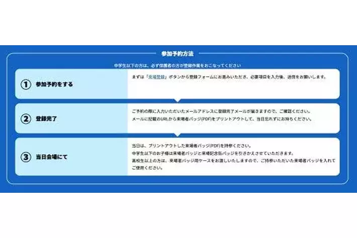 体験は、すべて予約不要・無料ですがイベント公式サイトから来場事前登録が必要となります。