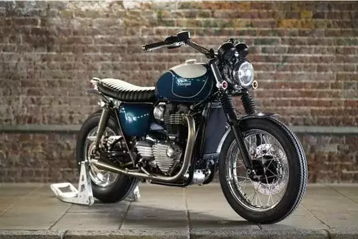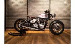 イタリアの作品は、ミラノのSouth Garage Motor Co創設者ジュゼッペ・カルッチ氏によって制作されました。1930~40年代のSpeed Twinの時代を超えた優雅さ、控えめなラグジュアリーさ、そして魅惑的な雰囲気に着想を得ています。Bonneville Bobberの力強い本質を基に、カルッチ氏はシャーシを再設計し、精密工学の技術を用いて特注のフロントフォークを含む目を引くカスタムパーツを制作しました。