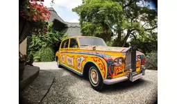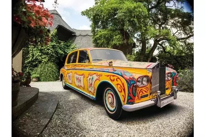 1964年12月、ジョン・レノンはビートルズの『ハード・デイズ・ナイト(A Hard Day’s Night)』の成功を祝してファントムVをオーダーしました。ウインドウ、バンパー、ハブキャップに至るまですべてブラックで仕上げられたこの車には、カクテル・キャビネットやテレビ、さらにはトランク内に冷蔵庫まで備え付けられていました。しかし、エルヴィスのファントムVと同様に、レノンのファントムも後に大胆な変貌を遂げることになります。1967年5月、『サージェント・ペパーズ・ロンリー・ハーツ・クラブ・バンド(Sgt. Pepper’s Lonely Hearts Club Band)』のリリース直前に車体はスプレーでイエローに塗り替えられ、その上からレッド、オレンジ、グリーン、ブルーの渦巻き模様が手描きされ、花柄のサイドパネルと、レノンの星座である天秤座のシンボルが手描きで描き加えられ、新たな個性を完成させました。
