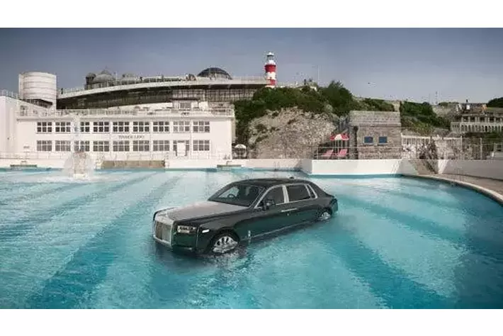 (※)今回使用したファントムは初期のプロトタイプ車両で、法的に破壊が義務付けられており、公道走行・販売・寄付などはできないものです。エンジン、ギアボックス、ブレーキ、バッテリーを含むすべての機械的・運用部品は撮影時にすでに取り外されており、残っていたのは空のボディシェルのみです。プールに入れる前には底面を徹底的に清掃し、撮影はティンサイド・リドの衛生・安全チームと十分に協議のうえ実施。施設に損害を与えず、利用者への影響を最小限に抑えるよう配慮しました。